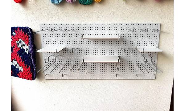 Üzerinde bulunan 1250 adet delik sayesinde raf ve çubukları bir çok farklı kombinasyonla yerleştirebilirsiniz.